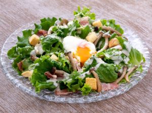 お馴染みのサラダもきのこでボリュームとうまみがアップ!若返りのビタミンとも呼ばれるビタミンEが豊富な卵と、食物繊維豊富なきのこの組み合わせは、美容にもおすすめです。