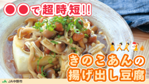 レンジで簡単・時短で作れる「きのこあん」を、外はカリッ、中はふわっとした揚げ出し豆腐に、たっぷりかけた満足感のある1品です!夜ごはんのおかずはもちろん、お酒のおつまみにもおすすめです。