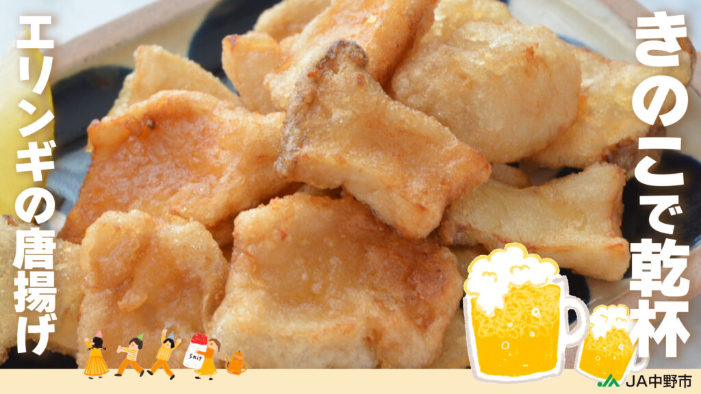 本日のレシピは…ビールやワインのつまみにぴったり!「エリンギのから揚げ」です。