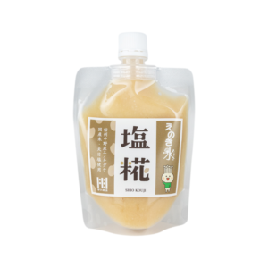 長野県産米で作った米糀に信州中野産えのきたけで作ったえのき氷を約30%配合。天然ミネラル豊富な天日塩を使用したマイルドでうま味たっぷりの塩糀です。